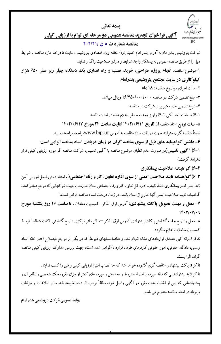 مناقصه شماره ت م ن /۲۱/۴۰۲