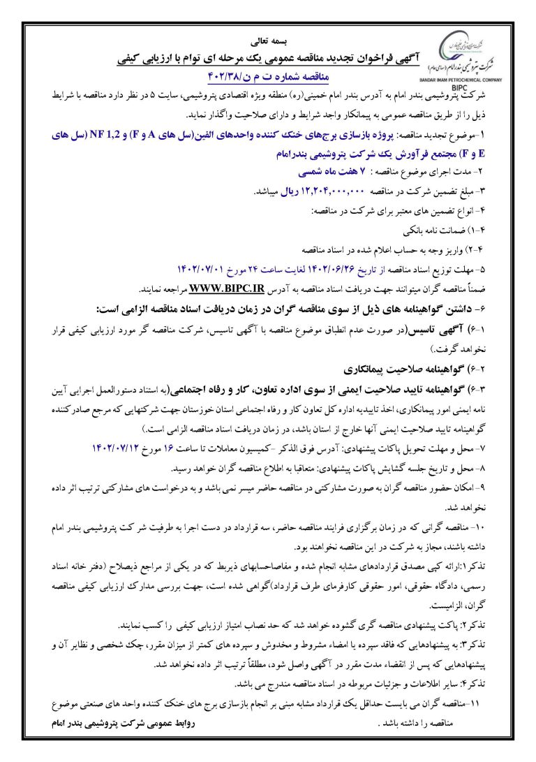 مناقصه شماره ت م ن/۳۸/۴۰۲