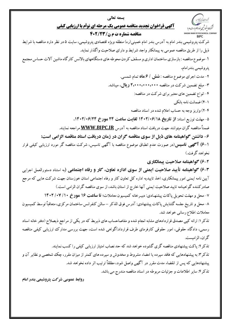مناقصه شماره ت م ن/۲۳/۴۰۲