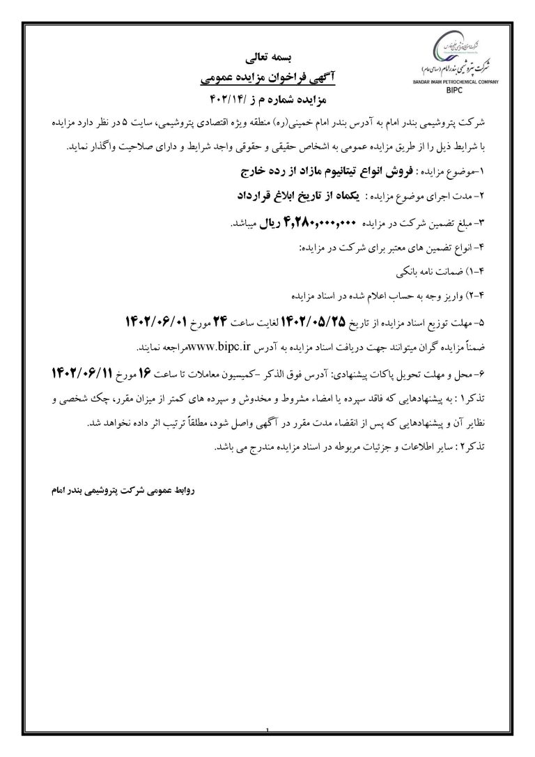این آگهی طی دو نوبت در تاریخ های ۲۳ و ۲۵ مرداد ماه سال ۱۴۰۲ در روزنامه سراسری ایران منتشر خواهد شد .