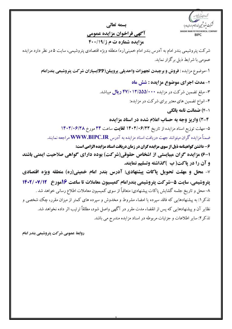 مزایده شماره ت م ز/۱۹/۴۰۰