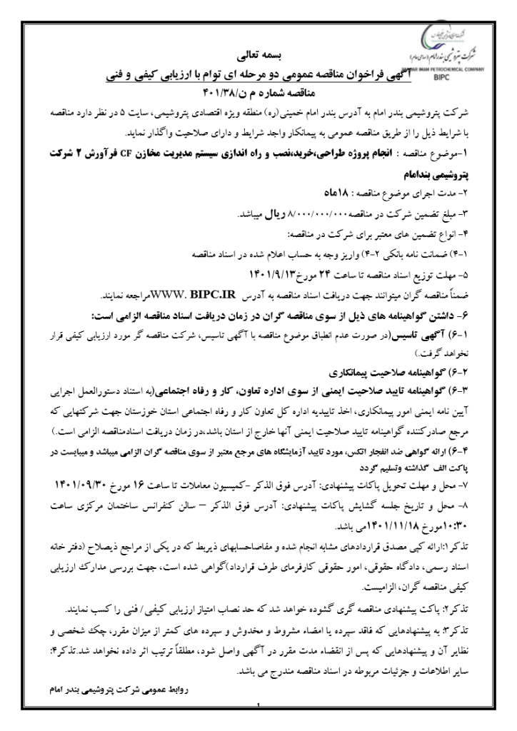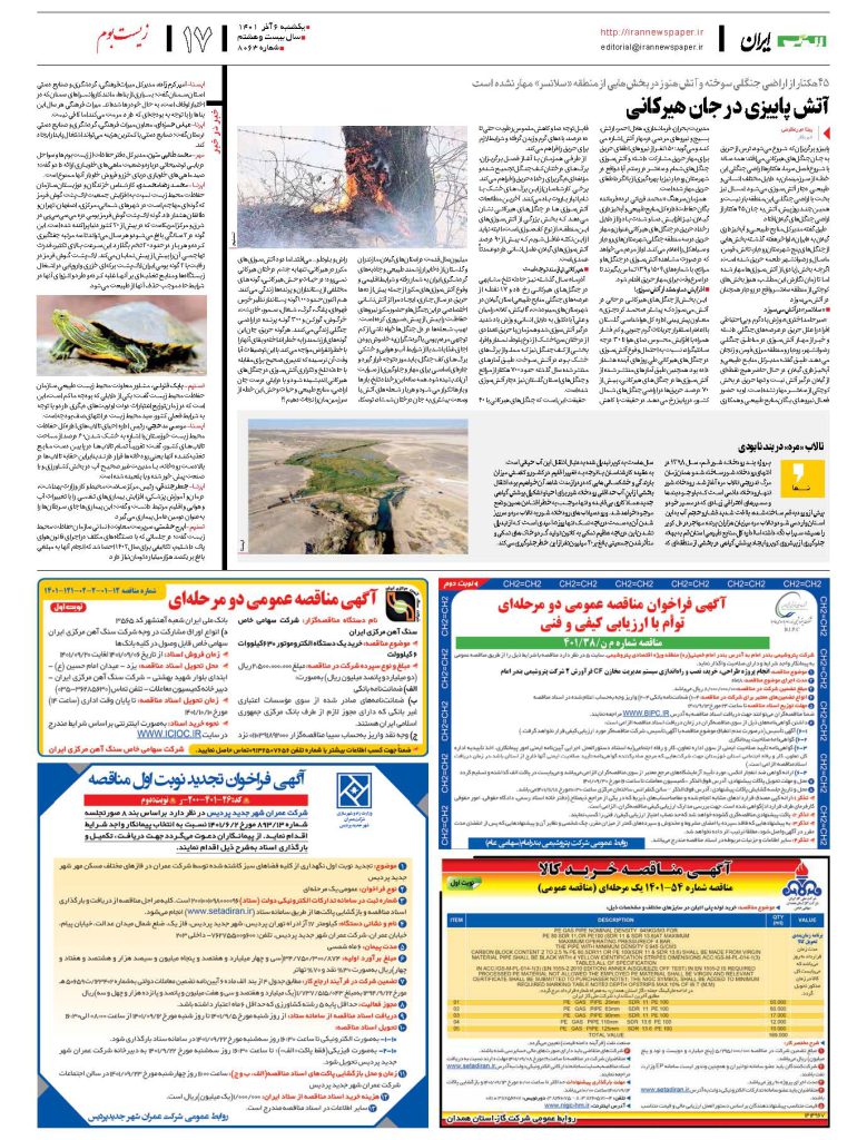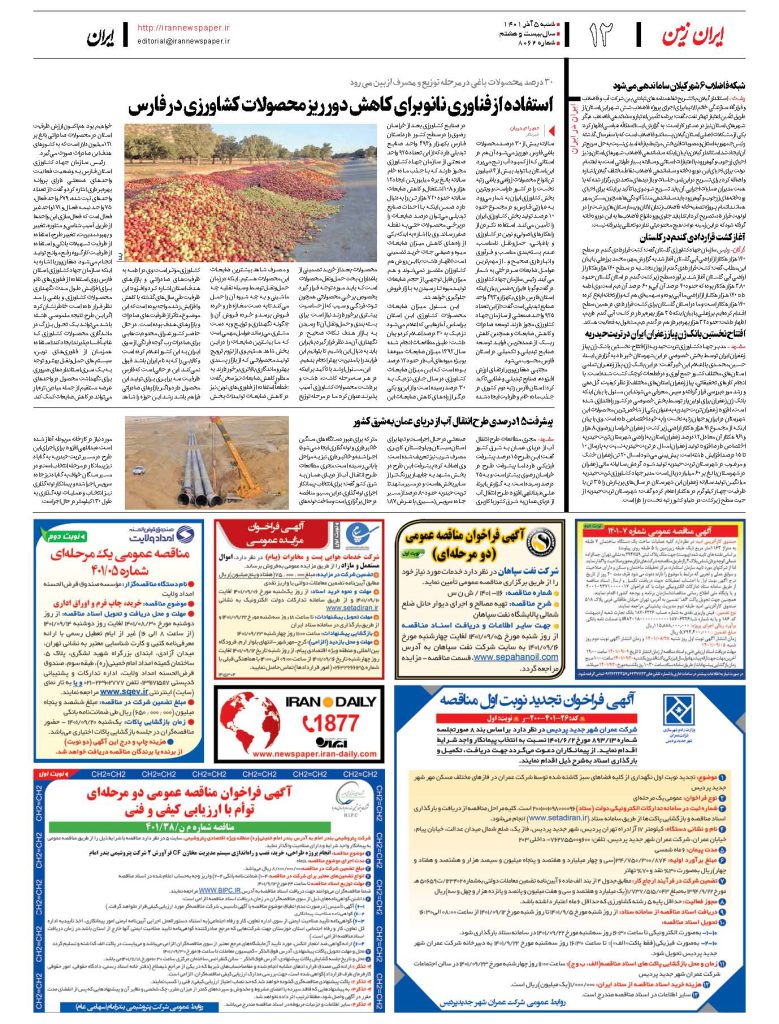 این آگهی طی دو نوبت در تاریخ های ۵ و ۶ آذر ماه در رزونامه سراسری ایران منتشر گردید.