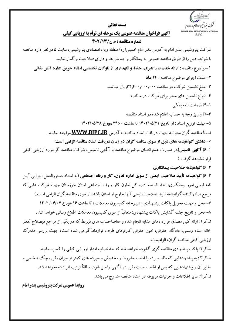 شماره مناقصه : م ن/۱۳/۴۰۲