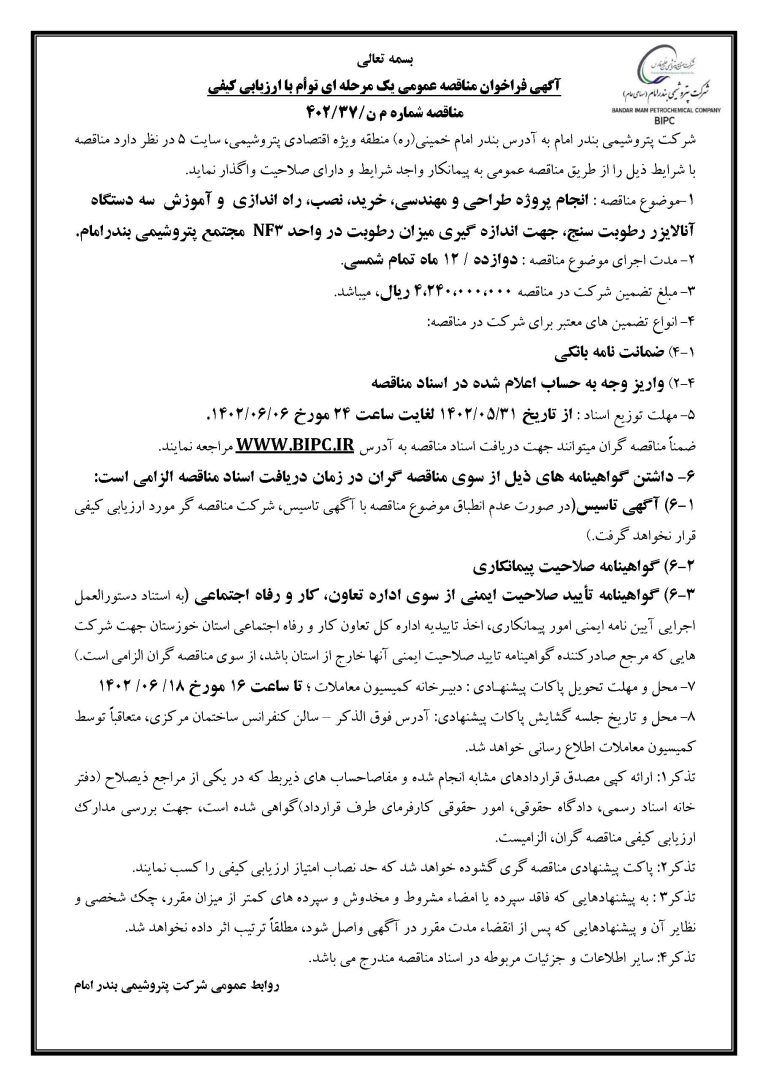 مناقصه شماره م ن/۳۷/۴۰۲