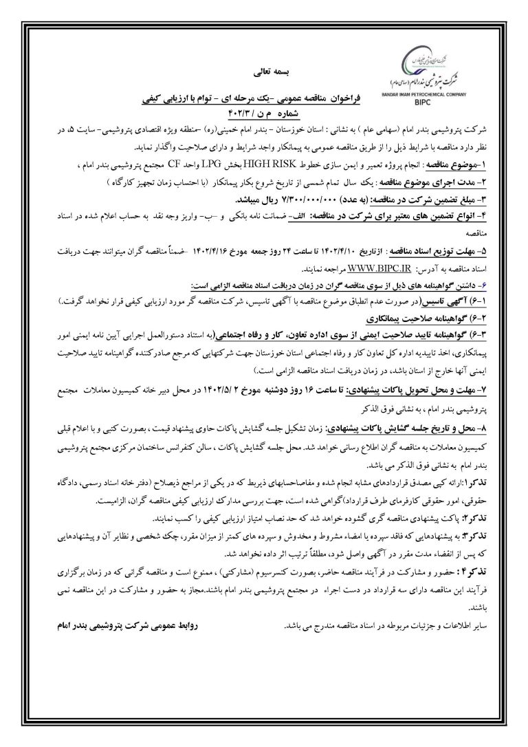 این آگهی طی دو نوبت در تاریخ های ۷ و ۱۰ تیر ماه سال جاری در روزنامه سراسری ایران منتشر میگردد .
