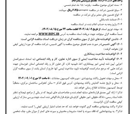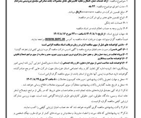 مناقصه شماره م ن/78/402موضوع مناقصه: طراحي، تهيه و تعويض لوله هاي آب شبكه زير زميني آتشنشاني واحد PVC شركت پتروشيمي بندرامام