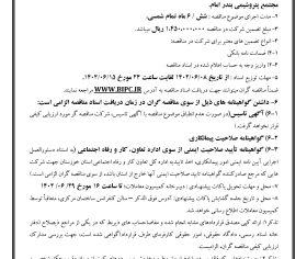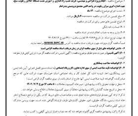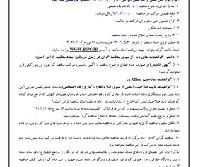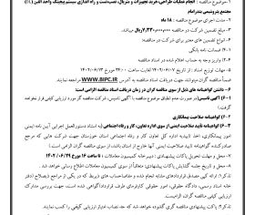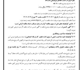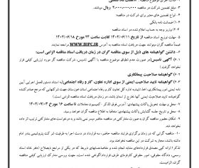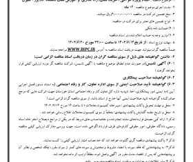 شماره مناقصه : م ن/43/402اين آگهي طي دونوبت در تاريخ هاي 12 و 14 شهريور ماه سال 1402 در روزنامه سراسري ايران منتشر خواهد شد .