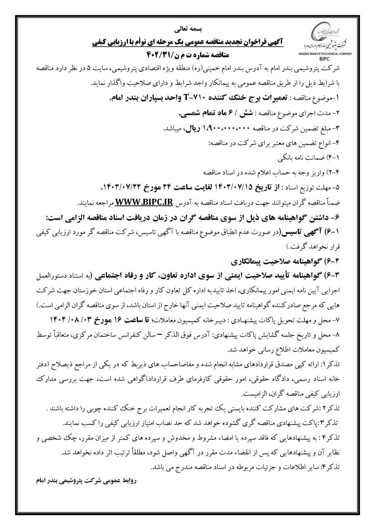 مناقصه شماره ت م ن/۳۱/۴۰۲